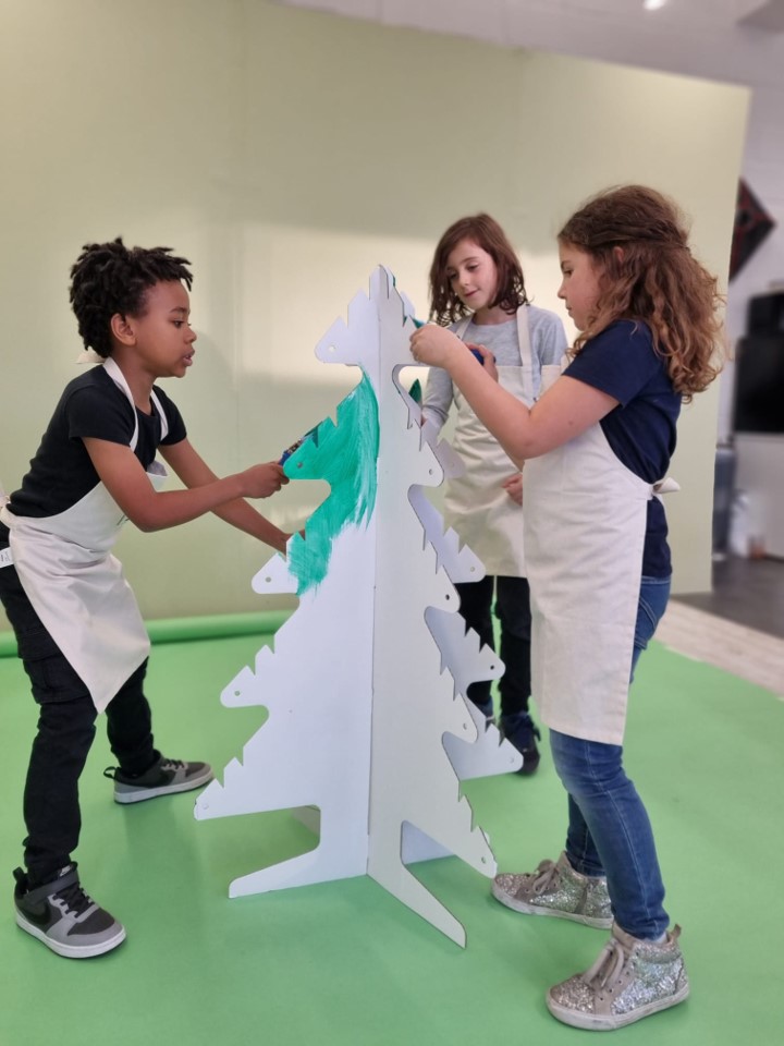 Eli and his friends decorating Eco – Kids Christmas tree.